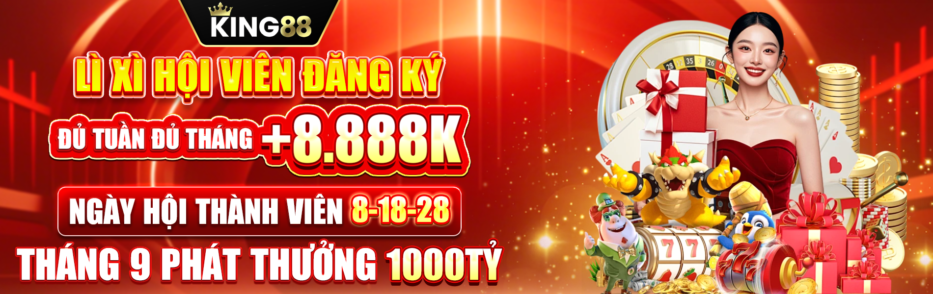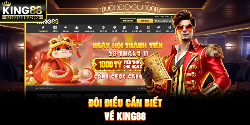King88 là nền tảng giải trí cá cược trực tuyến uy tín nhất tại thị trường Châu Á, và được đông đảo người dùng tại Việt Nam biết đến, chính thức đi vào hoạt động từ năm 2018. Từ những ngày ra đầu ra mắt thị trường, nền tảng đã định hướng phát triển theo mô hình hiện đại nhằm bảo vệ hệ thống vận hành ổn định, an toàn và mượt mà. King88.com hoạt động hợp pháp dưới sự quản lý của Costa Rica & Gaming Curacao, mang đến một môi trường giải trí chuyên nghiệp, đáng tin cậy. Toàn bộ nền tảng được bảo mật bằng SSL 128-bit & Secure Socket, giúp bảo mật tuyệt đối thông tin và giao dịch người chơi. Sau quá trình mở rộng, King 88 đã hoàn thiện hệ sinh thái giải trí đa dạng với nhiều sảnh chơi hấp dẫn như casino online, cá cược thể thao, slot game, bắn cá, đá gà, esports, xổ số, lô đề,…hợp tác cùng các nhà cung cấp hàng đầu thế giới như Jili, PG, NetEnt, SA Gaming. Bên cạnh đó, nhà cái thường xuyên triển khai các chương trình ưu đãi định kỳ cùng các khuyến mãi hấp dẫn giành cho tân thủ, giúp người chơi ưu vốn cược ngày từ khi tham gia tại nền tảng. Đăng ký ngay hôm nay để có cơ hội nhận +888K vào tài khoản!